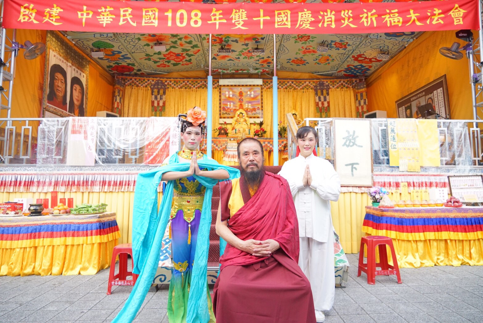 0share Facebook0 Twitter0 LinkedIn0 Blogger 微博 Line世界佛教正心會指導上師恆性嘉措仁波且(中)與迴旋藝術工作坊的太極棒江佳玲(右)及飛天敦煌舞黃禮璁(左)合照