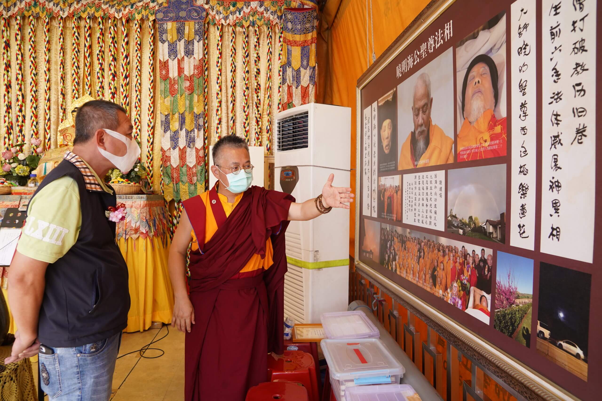 行動佛殿135站高雄大樹,師兄向信眾介紹因海聖尊金剛不壞之身