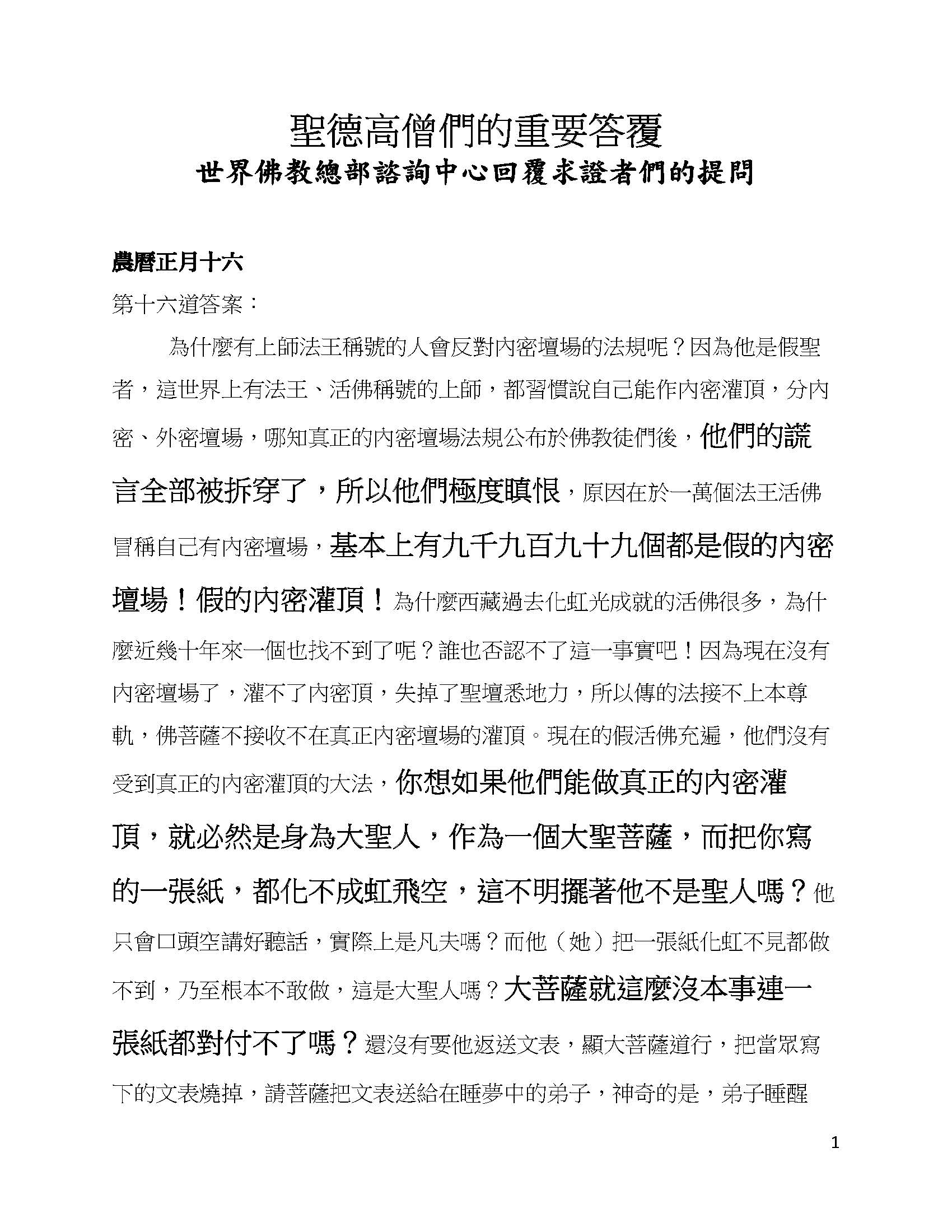 聖德高僧們的重要答覆(農曆正月十六:第十六道答案)