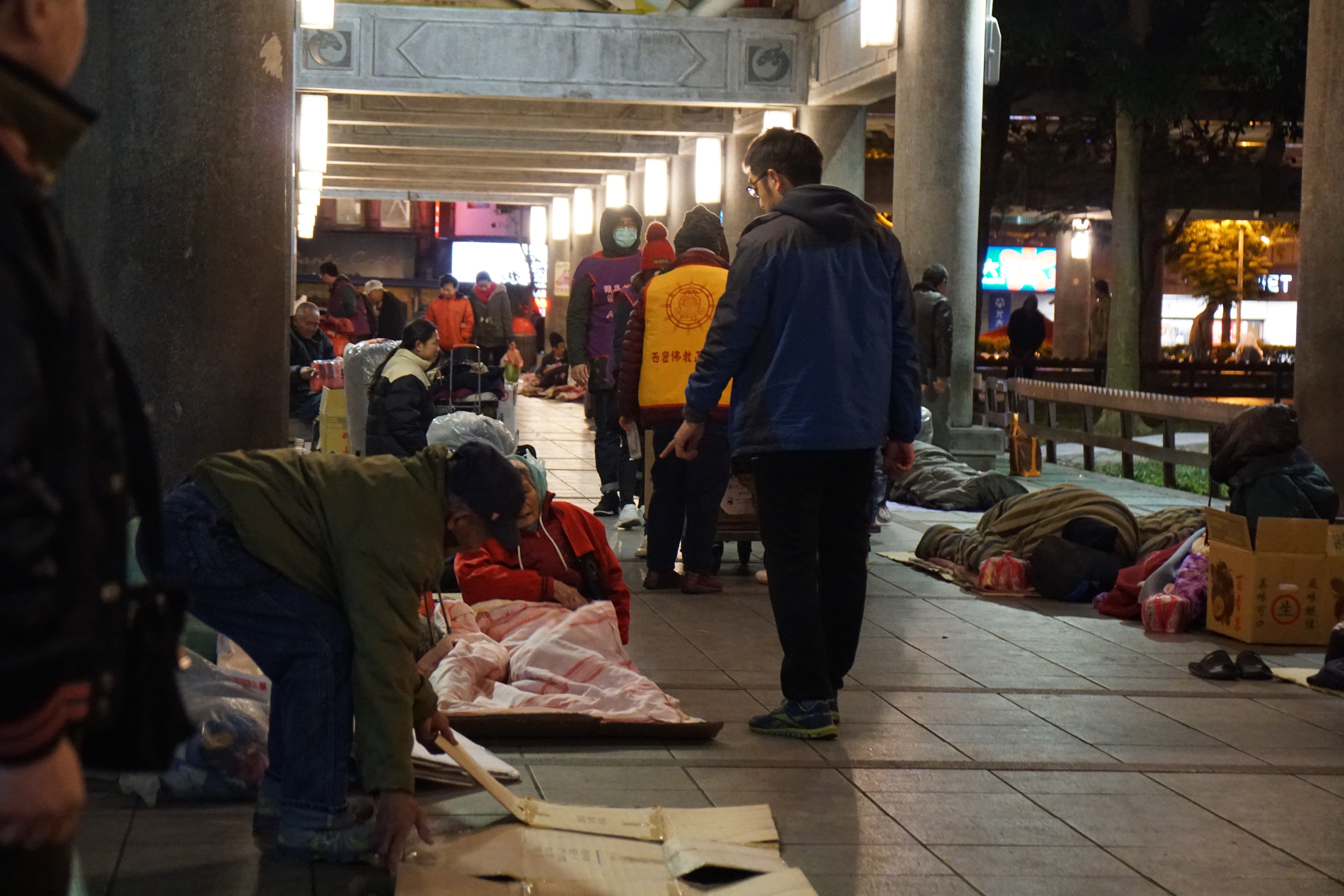 - 龍山寺公園的騎樓是寒士們晚上休息的地方