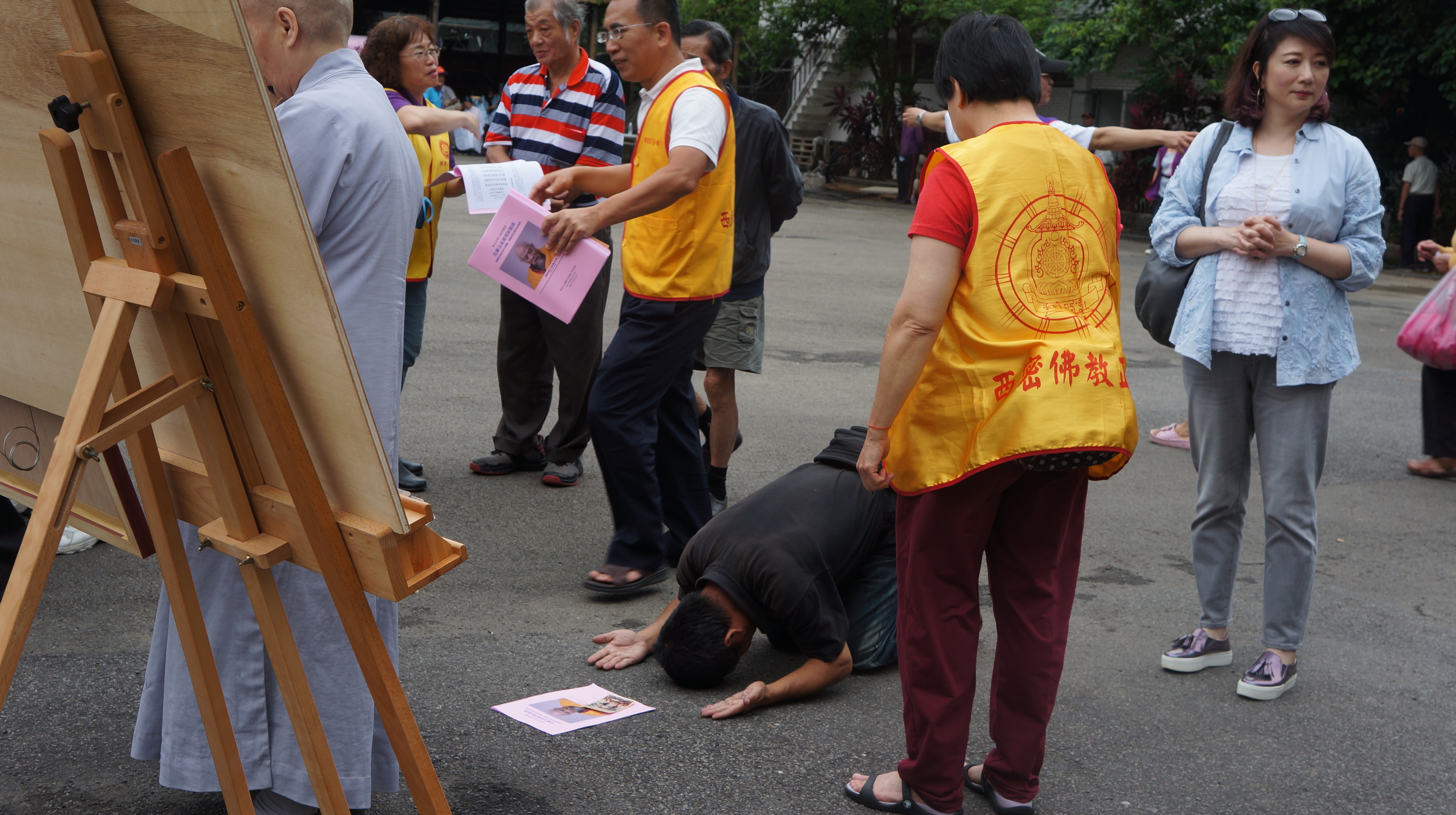 很多寒士及志工被 H.H.第三世多杰羌佛返老回春的法照及因海聖尊法照所吸引,駐足瞻禮。出家師及師兄姊們一一的為他們介紹,希望以此為機緣接引有緣眾生,讓他們了解佛法之殊勝!