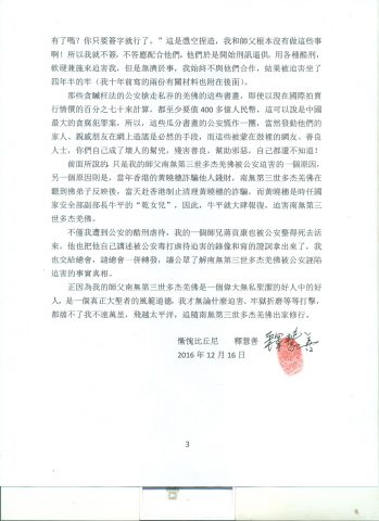 國際佛教僧尼總會收到了釋慧善比丘尼交來的一些材料,內容是有關她本人以及蔣貢康仁波且被深圳公安酷刑逼供,要求他們配合公安來誣陷南無第三世多杰羌佛,今天發的這些材料是他們二人親自所寫,蔣貢康的錄像也是他們提交的。
