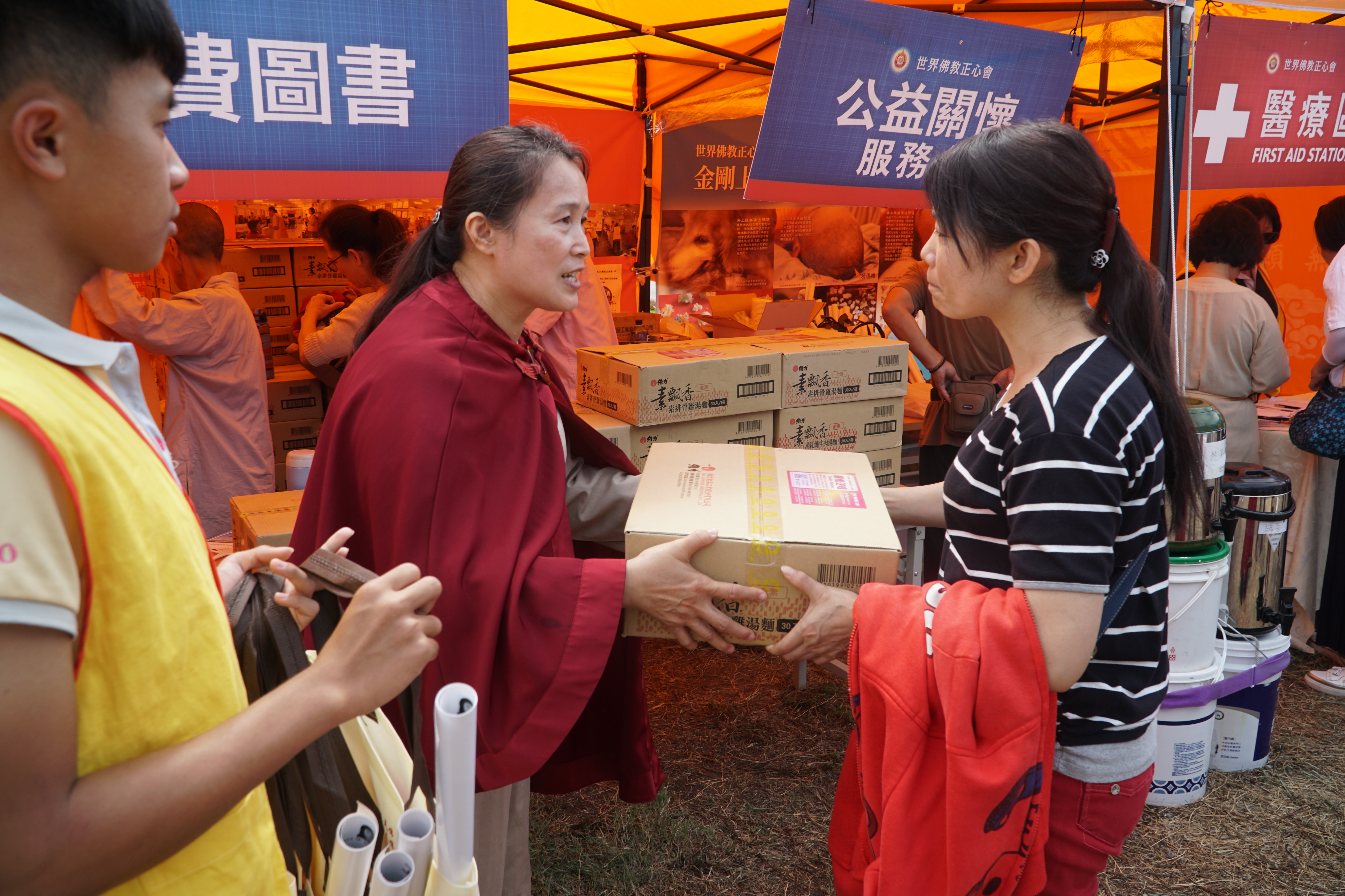 - 自暑夏以來,行動佛殿所到之處,廣發愛心物資與圖書,邀請民眾同誦《佛說阿彌陀經》,祈願阿彌陀佛無量光明遍照,令我們安居樂業、離苦得樂、福慧增長,社會安定。