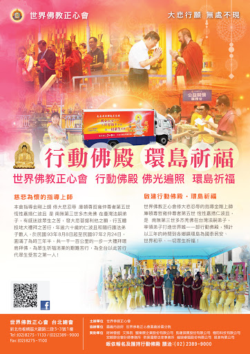 - 行動佛殿的祈福法會結合公益慈善演出,邀請表演團體以樂藝方式供佛,提供精采表演讓所有民眾及弱勢團體能夠近距離欣賞難得一見的藝文饗宴