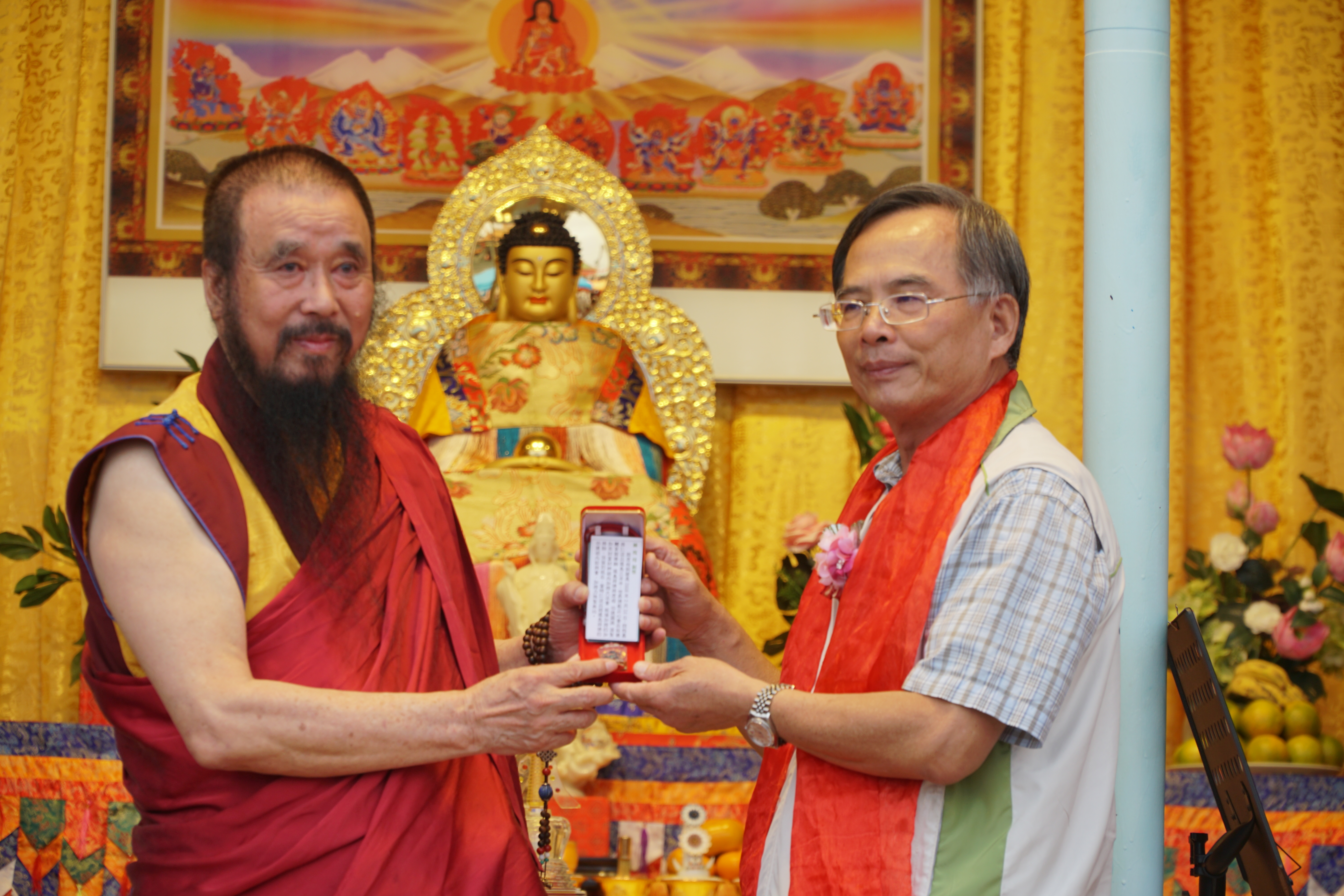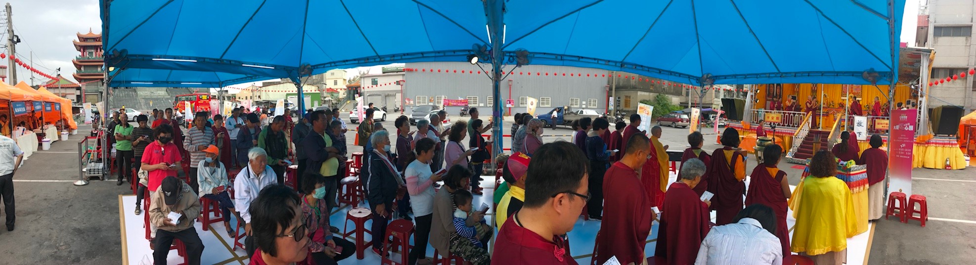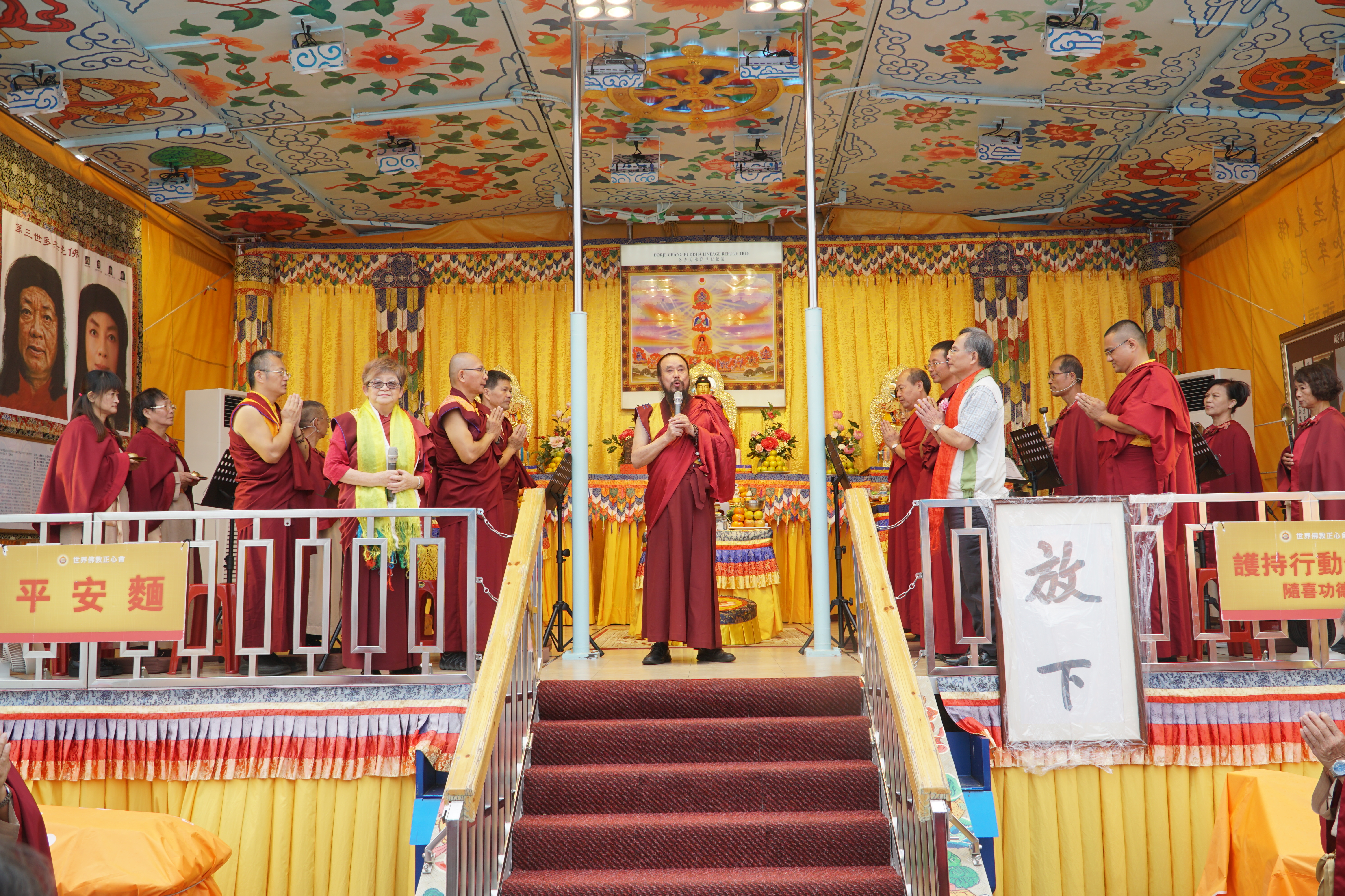 - 恆性嘉措仁波且致詞表示:非常開心來到我的故鄉,也謝謝先天宮提供這麼好的場地,先天宮祭拜的是王爺,海港附近多是媽祖信仰,我們拜媽祖、王爺是求身體健康,家庭美滿、財源廣進,但是我們百年之後呢?我們現在更要皈依佛法僧三寶,修學如來正法,祈請佛祖帶我們去西方極樂世界!不要再來受生老病死苦,這也是行動佛殿的目的!