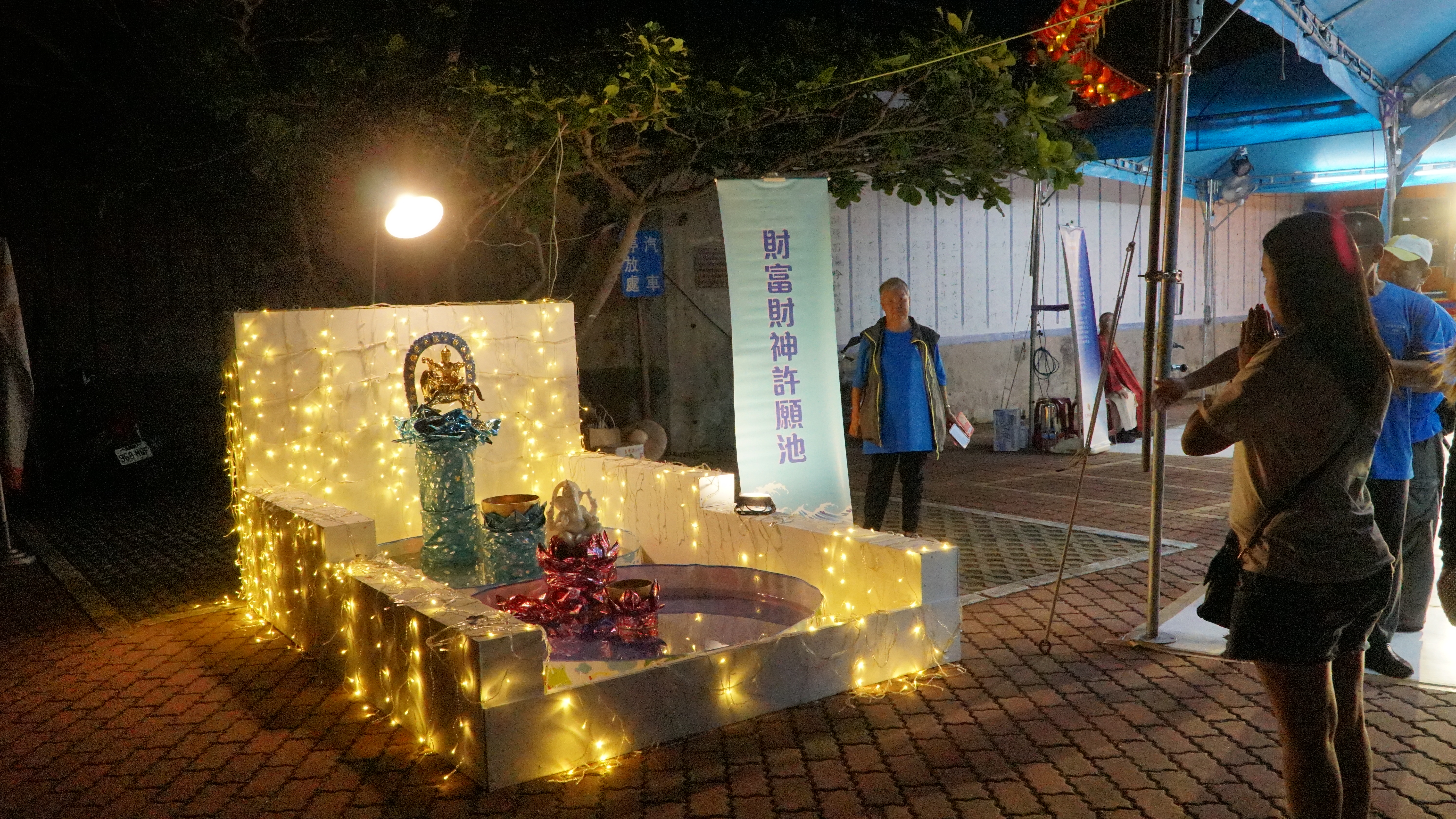 - 圖說:世界佛教正心會行動佛殿在澎湖觀音亭布置財富財神許願池讓大家禮拜財神發大財