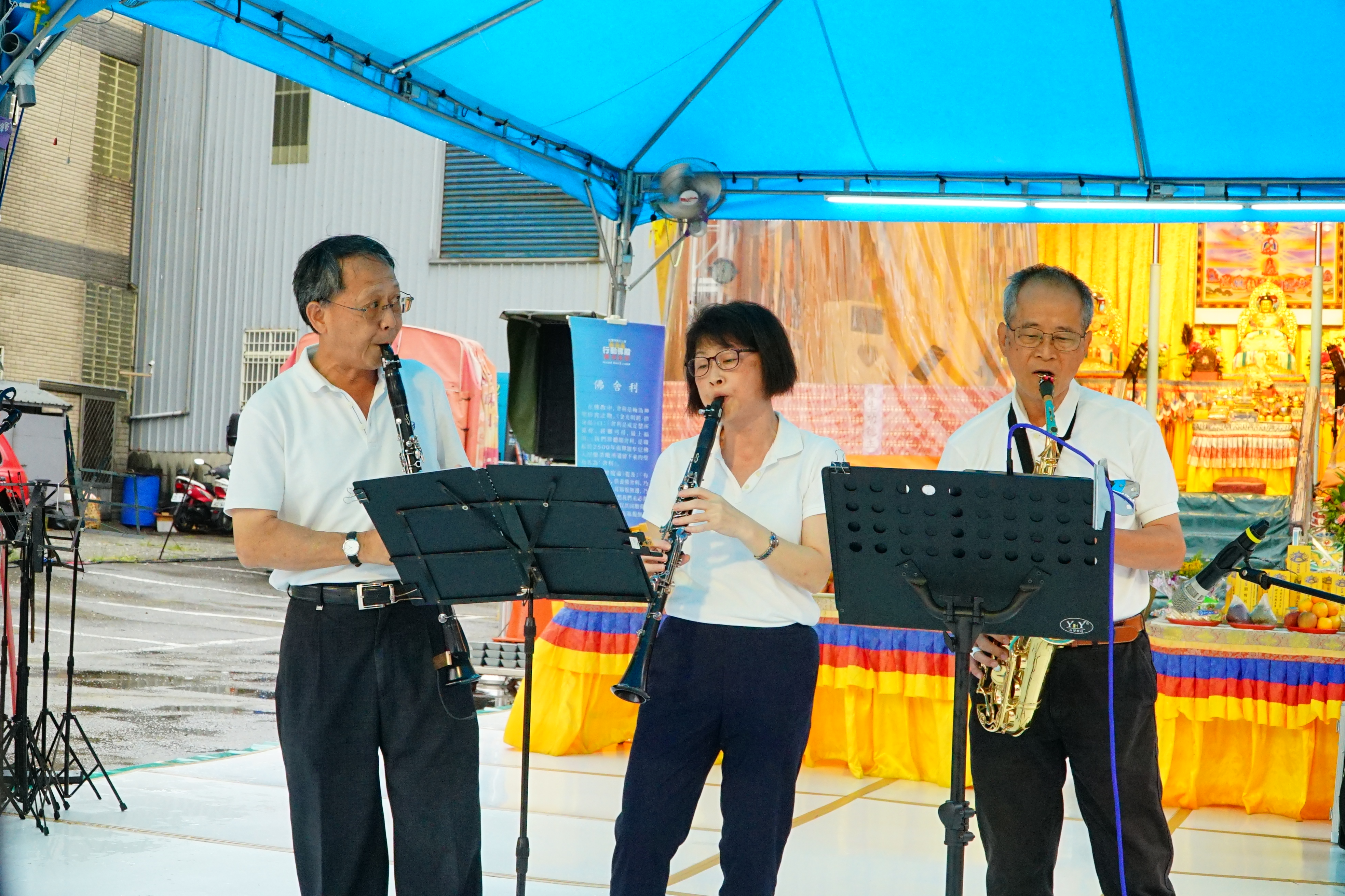 - 行動佛殿51站新北八里,週六晚上公益慈善晚會由大稻程樂團帶來開場演出