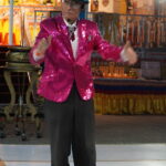 周末晚上藝文晚會最引人注目的是老當益壯的82歲歌手駱明老師,曾是鳳飛飛15歲的啟蒙老師,勁歌熱舞的表演,出色的歌聲,讓台下觀眾目不轉睛,大聲叫好!