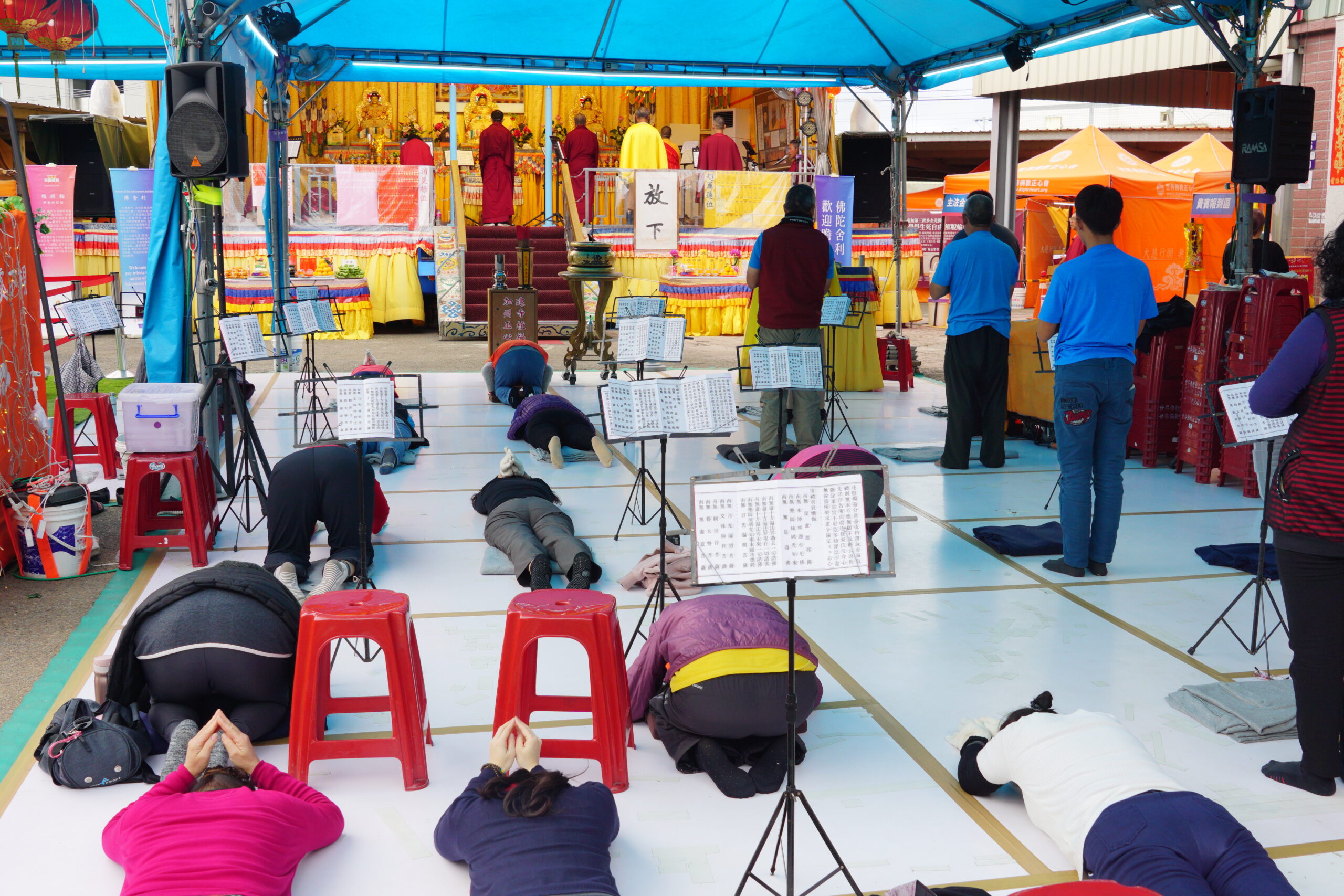 - 行動佛殿72站台中后里,信眾虔誠恭誦佛經、拜懺