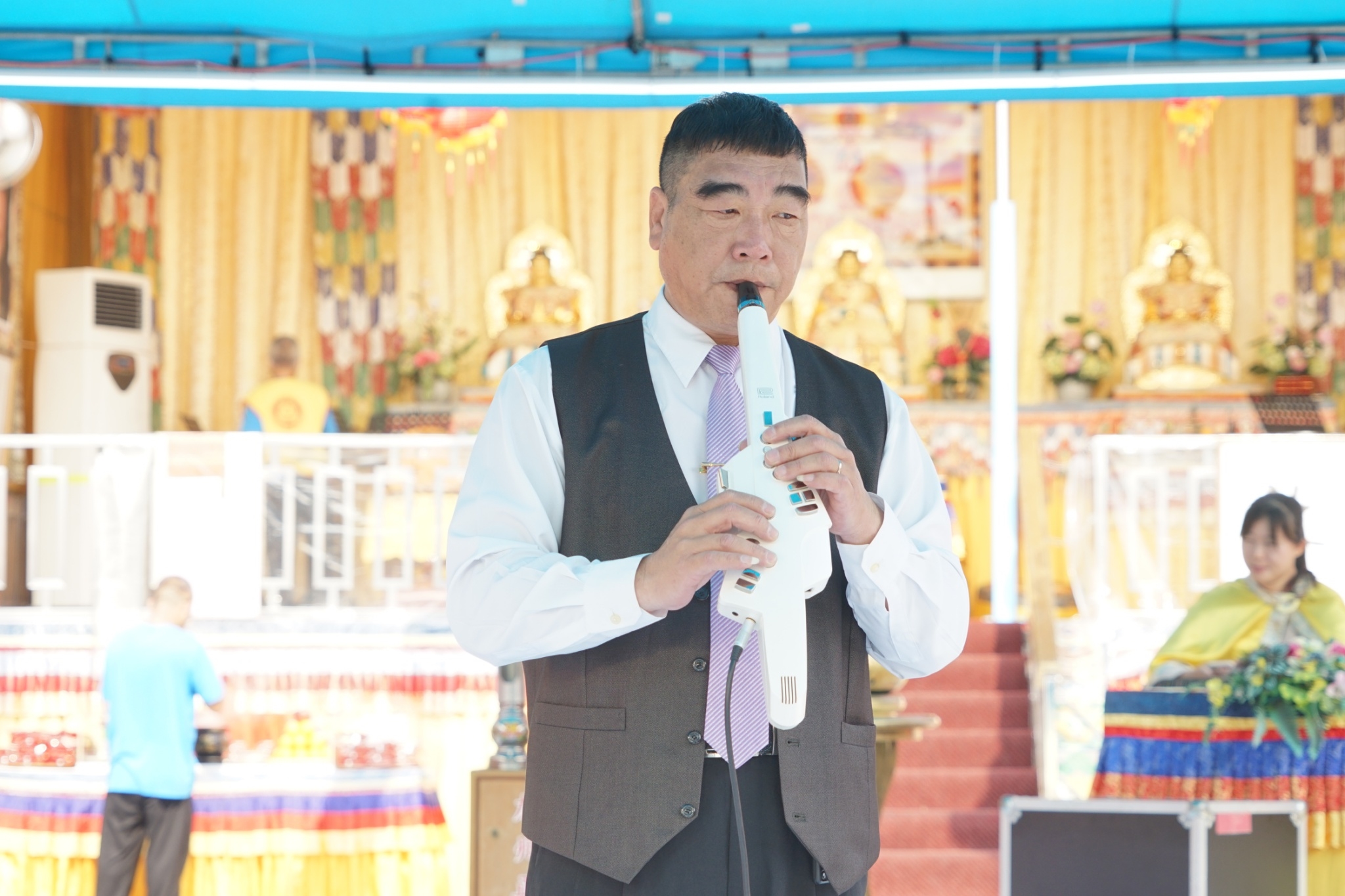 - 行動佛殿所到之處,除了祈福法會,還安排各地的表演團體進行慈善義演,以樂藝方式供佛