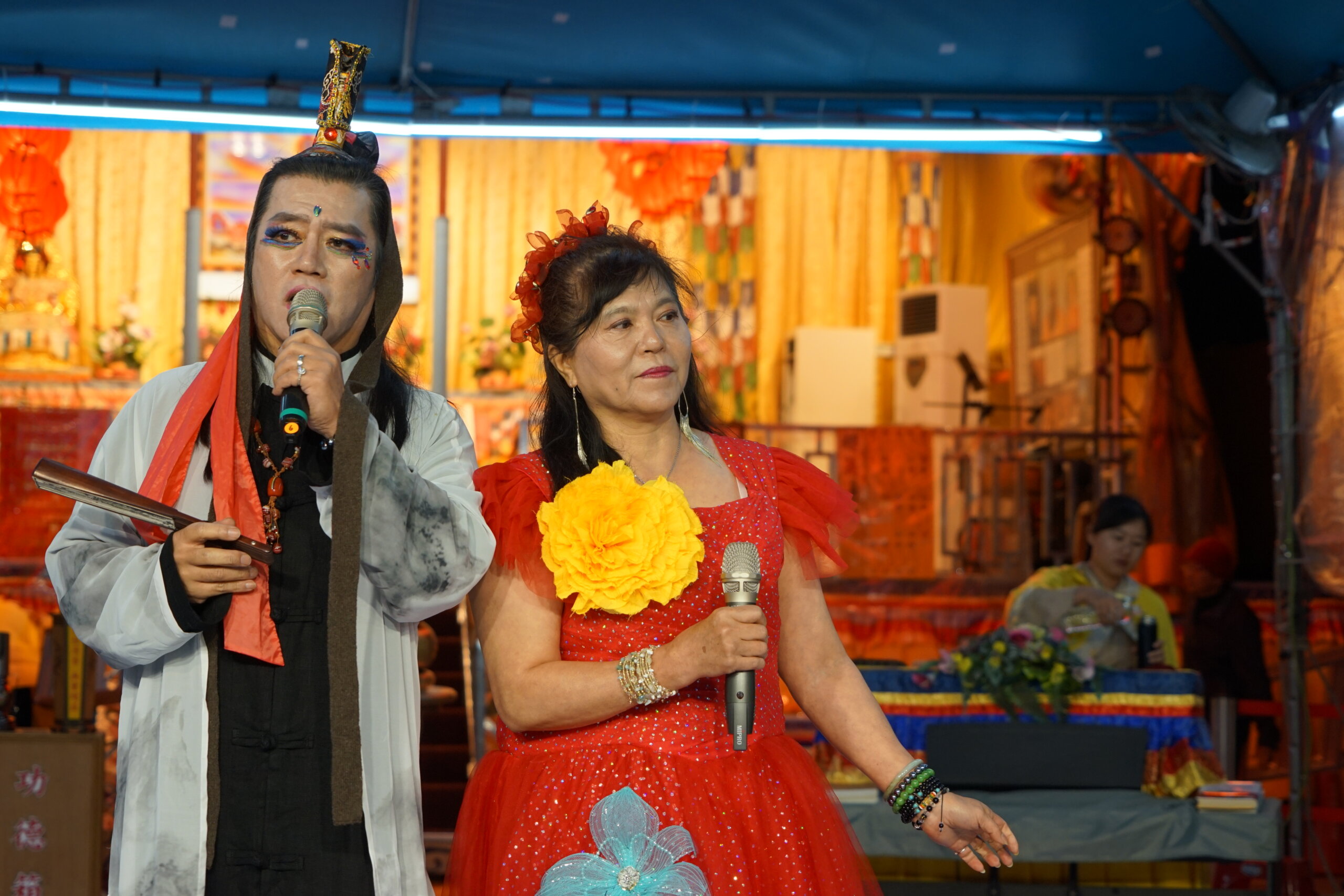 - 行動佛殿所到之處,除了祈福法會,還安排各地的表演團體進行慈善義演,以樂藝方式供佛