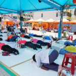 - 行動佛殿83站彰化大村火車站,「恭祝 釋迦世尊聖誕浴佛暨護生法會」,浴佛民眾保持相當距離做好防疫措施