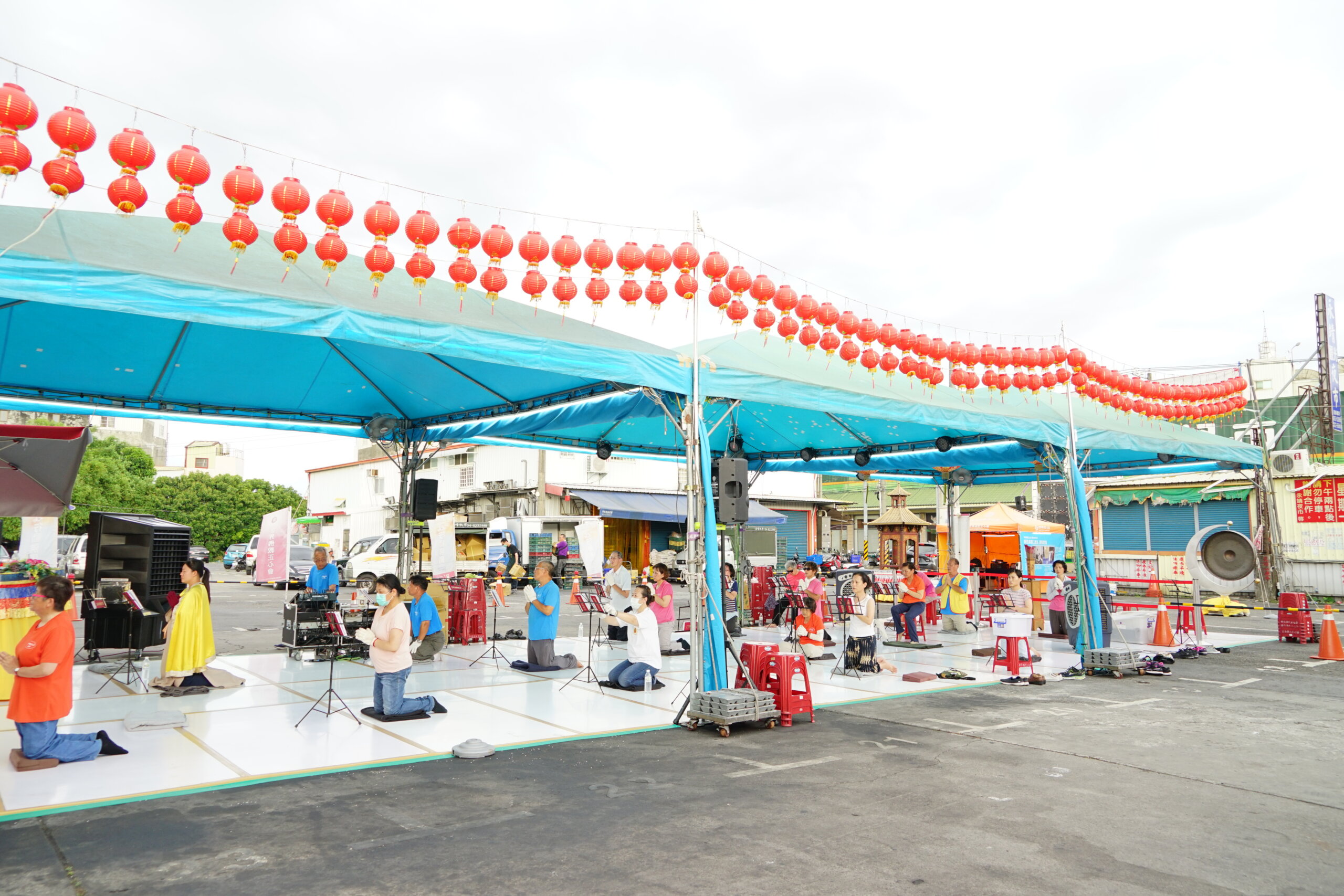 - 行動佛殿84站彰化永靖夜市,週五下午的禮拜慈悲藥師寶懺信眾揮汗如雨的虔誠禮拜