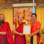 - 行動佛殿兩周年慶89站彰化花壇虎山巖,本會指導上師恆性嘉措仁波且(右)致贈彰化縣政府秘書楊仁宗(左)珍貴加持物綠度母墜子內有《廿一尊救度母禮讚經》,希望大眾都能誦經祈福,災去福臨