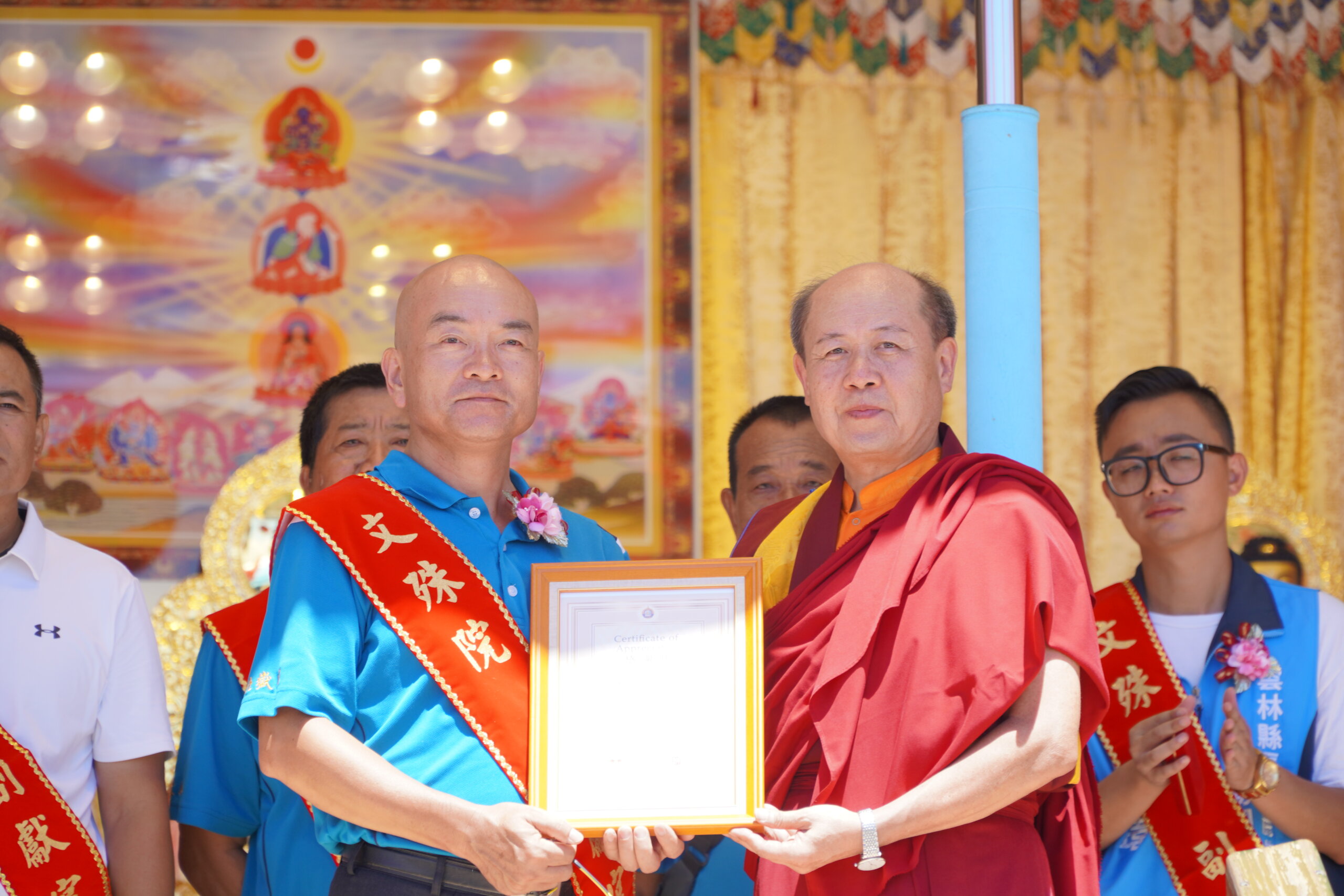 0share Facebook0 Twitter0 LinkedIn0 Blogger 微博 Line行動佛殿93站雲林麥寮海豐北嶽殿,該會卓志揚總會長(右)致贈感謝狀給北嶽殿住持林重慶主委,感謝北嶽殿提供場地及相關協助