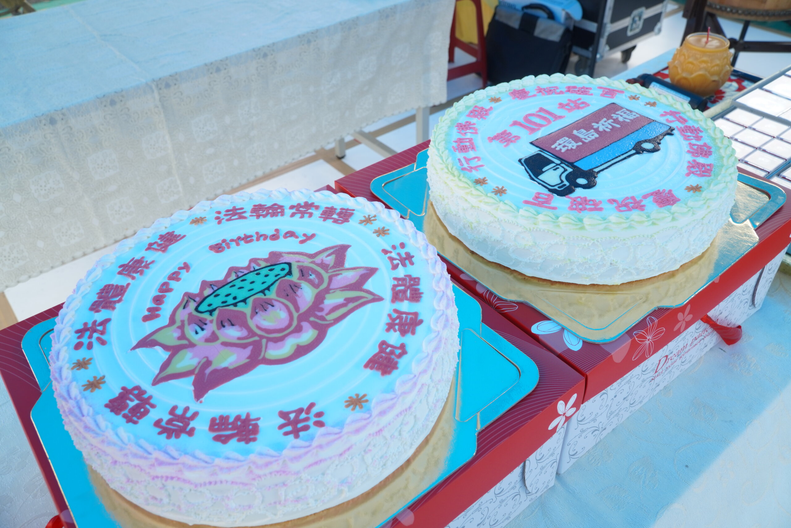 行動佛殿101站嘉義朴子,弟子們訂了蛋糕歡慶破百紀念