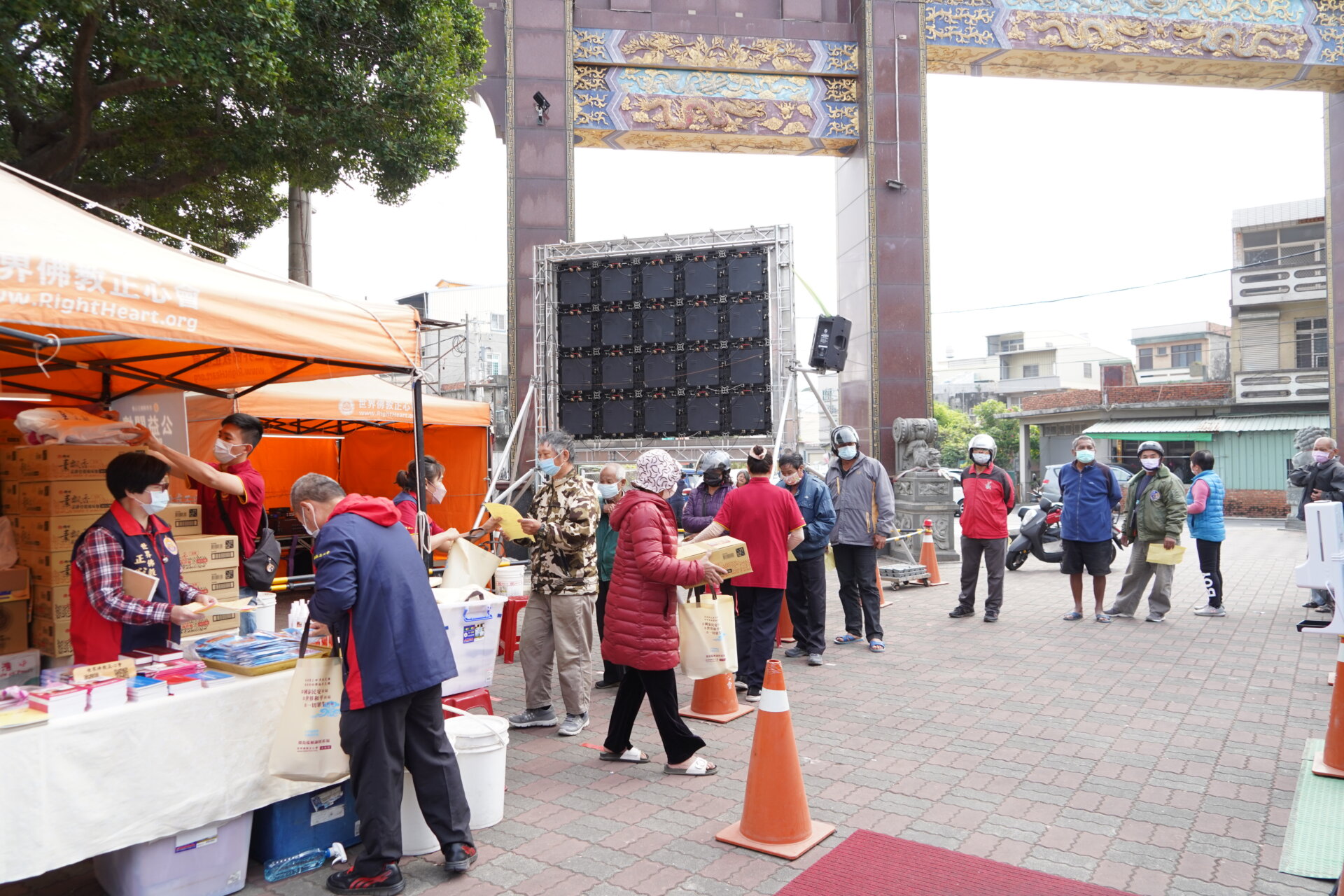 行動佛殿139站高雄橋頭,本會募集十方愛心致贈弱勢家庭口罩、酒精、泡麵等愛心物資